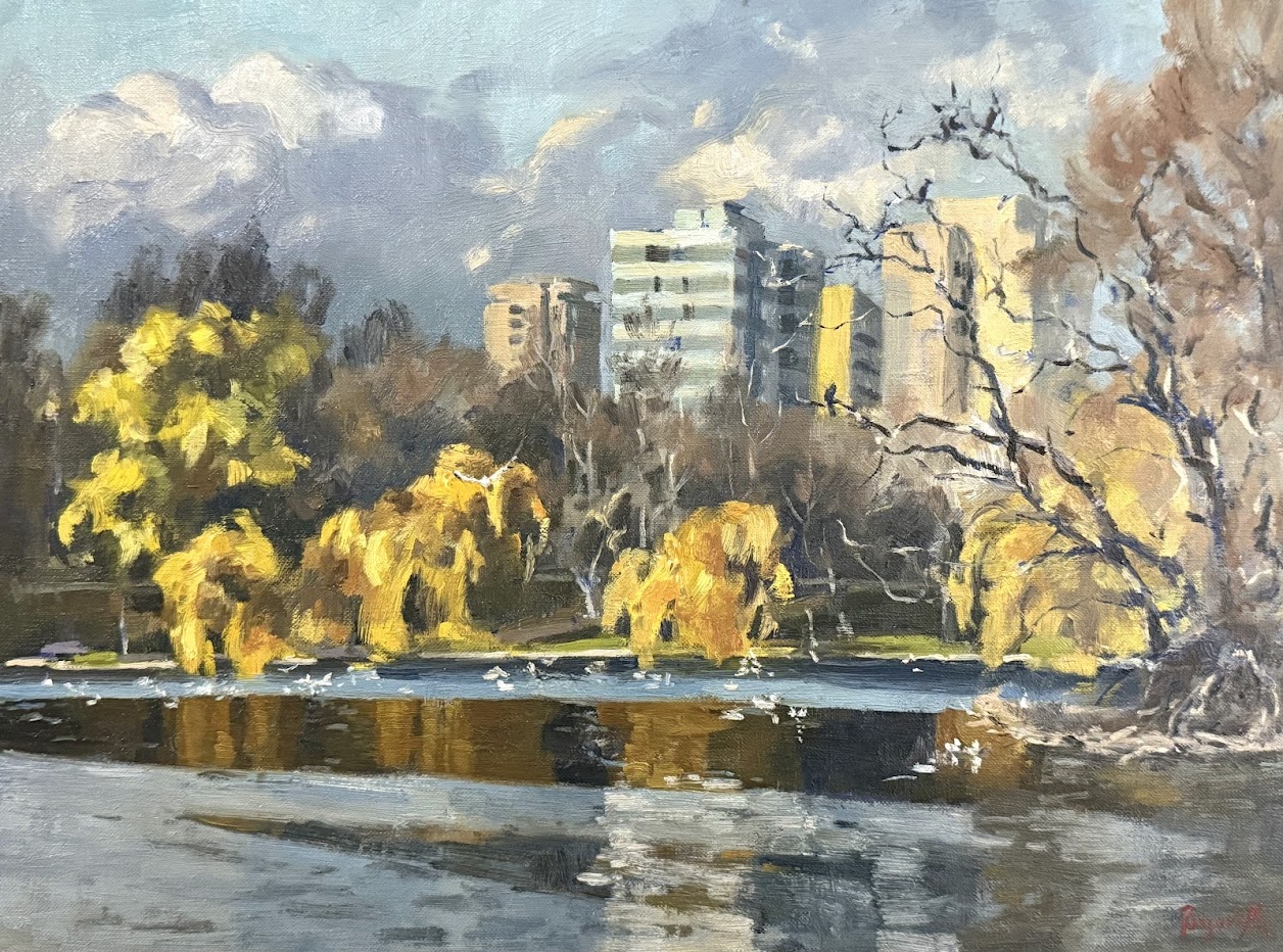In contrast with the fleeting nature of watercolor, oil reminds me of the materiality: the traces of brushstrokes, scratching, scraping, pushing and “sculpting” with paint. It trains the patience to see a picture emerge out of the fog and restraint to stop just before adding another detail.
